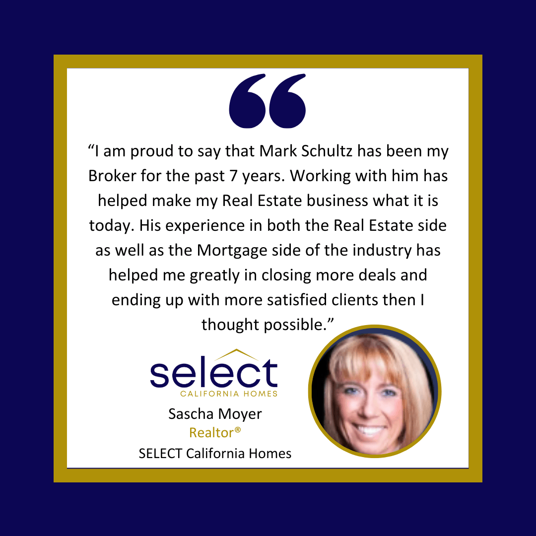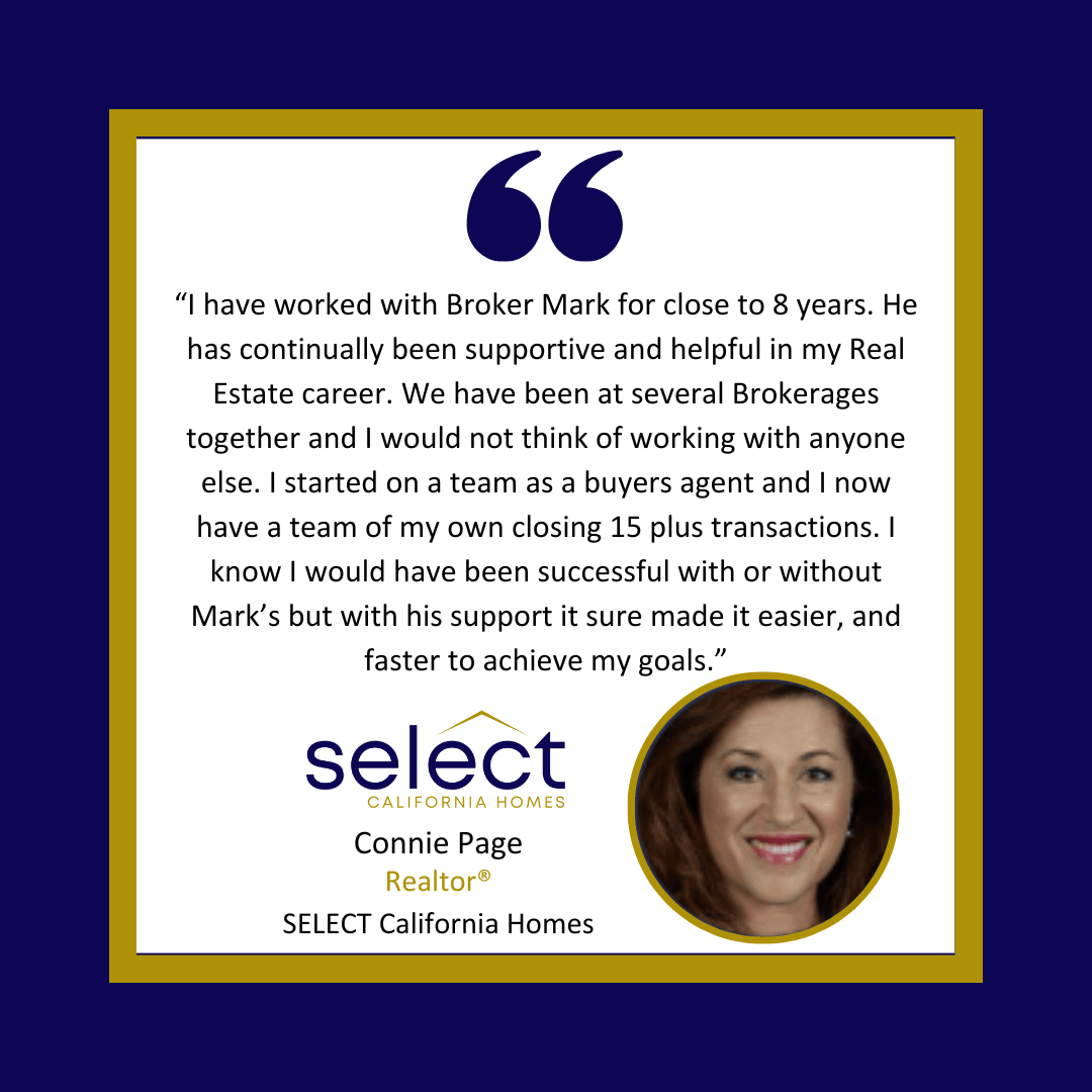 The level of direct support and experience that we offer is not available at most Brokerages and is designed for the sole purpose to help you close more transactions. This principal is what SELECT California Homes is founded on. We want to help Agents and Broker Associates make more money with less stress and full confidence in their transactions.